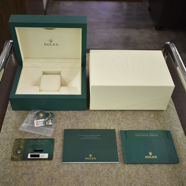 | 店長メモ | ケース径が41mmにサイズアップした新型サブマリーナーデイトです。 ベルト幅は広くなりましたが、ラグ部分がシャープになった事により従来のスタイリッシュな印象は損なわれていません。 ムーブメントには70時間のパワーリザーブを誇る新型ムーブメントCal.3235が搭載され、6時位置の"SWISS MADE"の間に王冠マークが配置されています。 文字盤がブラックに変更された事で初代16610LVを彷彿とさせるデザインはとても格好良く人気が集中する事が予想されますので、お問い合わせはお早めにお願い致します。 *この個体は、昨今目にする機会がほとんどなくなった保護シールが貼られたままの未使用品です。 |