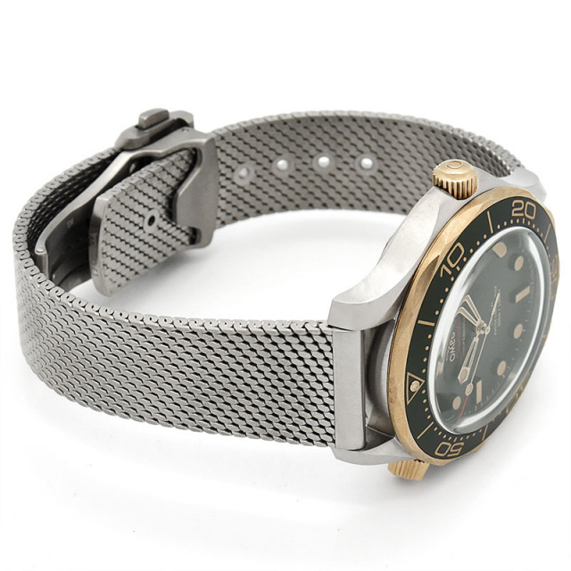 | 店長メモ | 軽量で耐久性に優れたチタンケースと、温かみのあるブロンズゴールドベゼルを組み合わせた独創的なダイバーズウォッチです。 グリーンダイヤルが上品に輝き、上質なスポーティさを演出します。 ムーブメントは高精度なコーアクシャル マスター クロノメーター Cal.8806を搭載し、約55時間のパワーリザーブと300m防水を実現し、素材・性能・デザインすべてが調和した、オメガの革新を象徴する一本です。 |