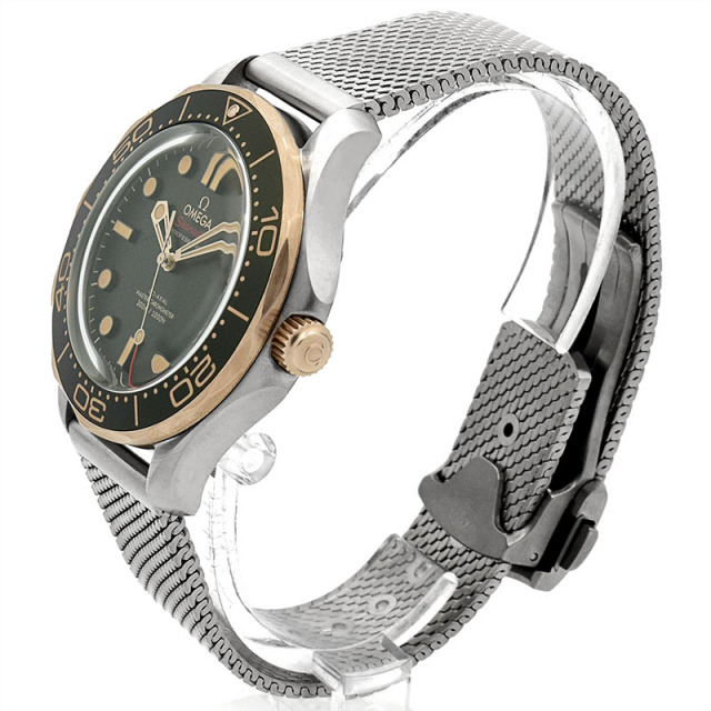 | 店長メモ | 軽量で耐久性に優れたチタンケースと、温かみのあるブロンズゴールドベゼルを組み合わせた独創的なダイバーズウォッチです。 グリーンダイヤルが上品に輝き、上質なスポーティさを演出します。 ムーブメントは高精度なコーアクシャル マスター クロノメーター Cal.8806を搭載し、約55時間のパワーリザーブと300m防水を実現し、素材・性能・デザインすべてが調和した、オメガの革新を象徴する一本です。 |