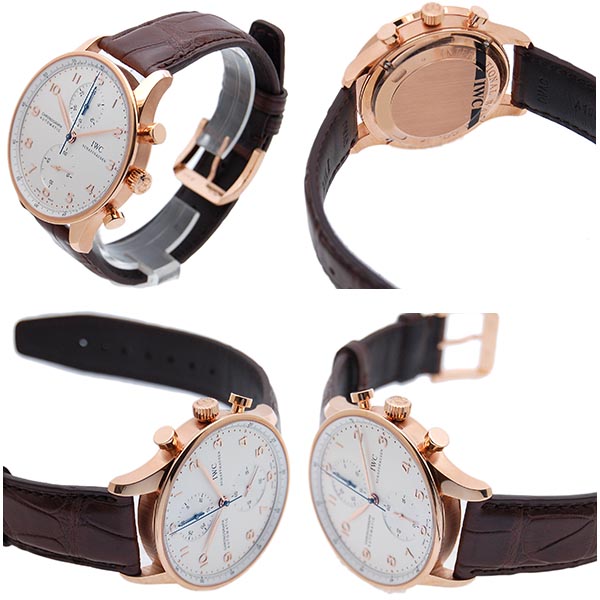 | 店長メモ | IWCの人気モデルポルトギーゼのレッドゴールドモデルです。2カウンターのクロノグラフでシンプルながら高級感のあるデザインが魅力です。ドーム型のサファイアガラス採用で、日常生活防水です。 |