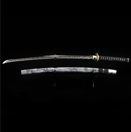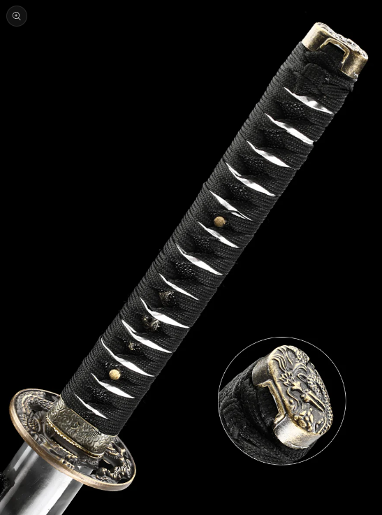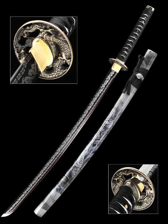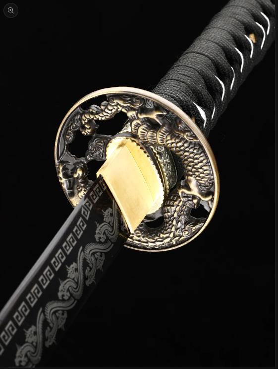 本物の日本武士刀を模した装飾、手作りの1095鋼製刃物、焼き付けされた草の龍の模様、唐代の龍剣