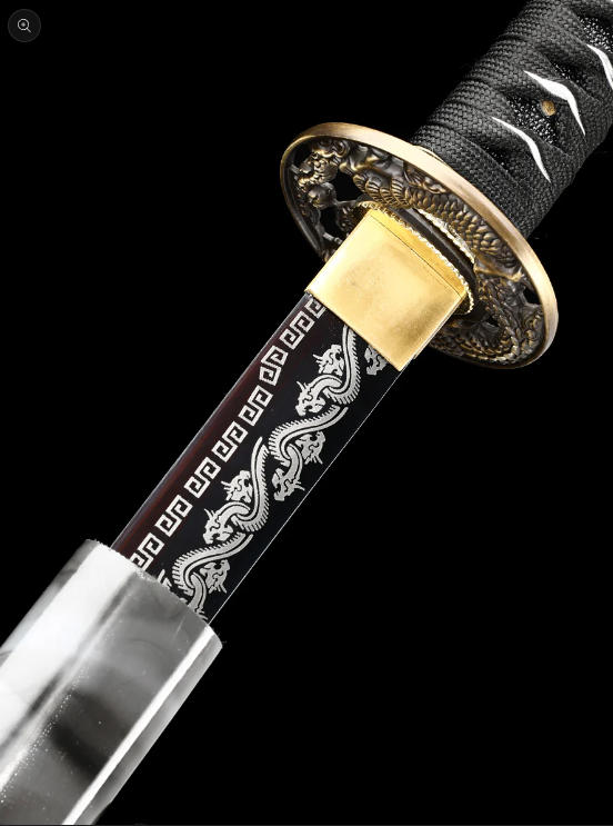 本物の日本武士刀を模した装飾、手作りの1095鋼製刃物、焼き付けされた草の龍の模様、唐代の龍剣