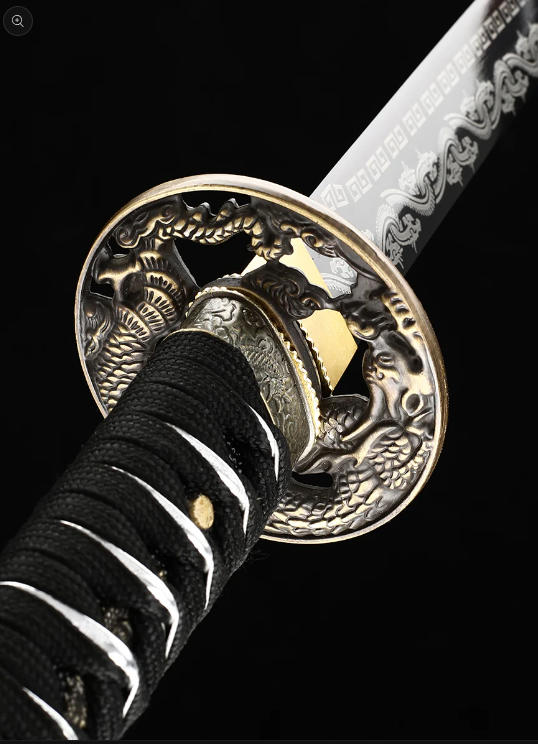 本物の日本武士刀を模した装飾、手作りの1095鋼製刃物、焼き付けされた草の龍の模様、唐代の龍剣
